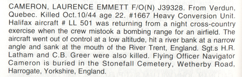 Click Here to return to Last Post Page for F/O (N) Laurence Emmett Cameron | |